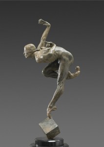 Artist in London Studio, working with dancer Sergei Polunin MacDonald’s work portrays “the beauty of the human body and the spirit that drives it”.[He works consistently with models throughout the process of creating a sculpture, often celebrated dancers, performers and athletes. MacDonald draws and sculpts his subjects over and over, often requiring models to repeat a specific dance move or spontaneous gesture. This may include small, quick sketches in an oil-base plasticine clay that are refined and enlarged as required to complete a particular piece. A mold is used to create editions in bronze through the “lost wax” technique. For each of MacDonald’s work he creates the final patina or surface coloration, which is subsequently duplicated by the patina artists on his staff for the remainder of the edition. The final patinated bronze is affixed to a marble base, also designed and selected by the artist as part of the overall sculptural composition.