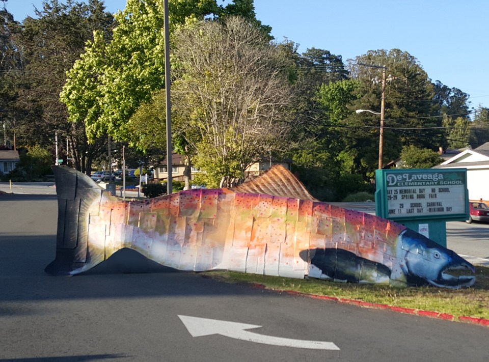 at 1243 × 921 in 23′ Coho Salmon sculpture