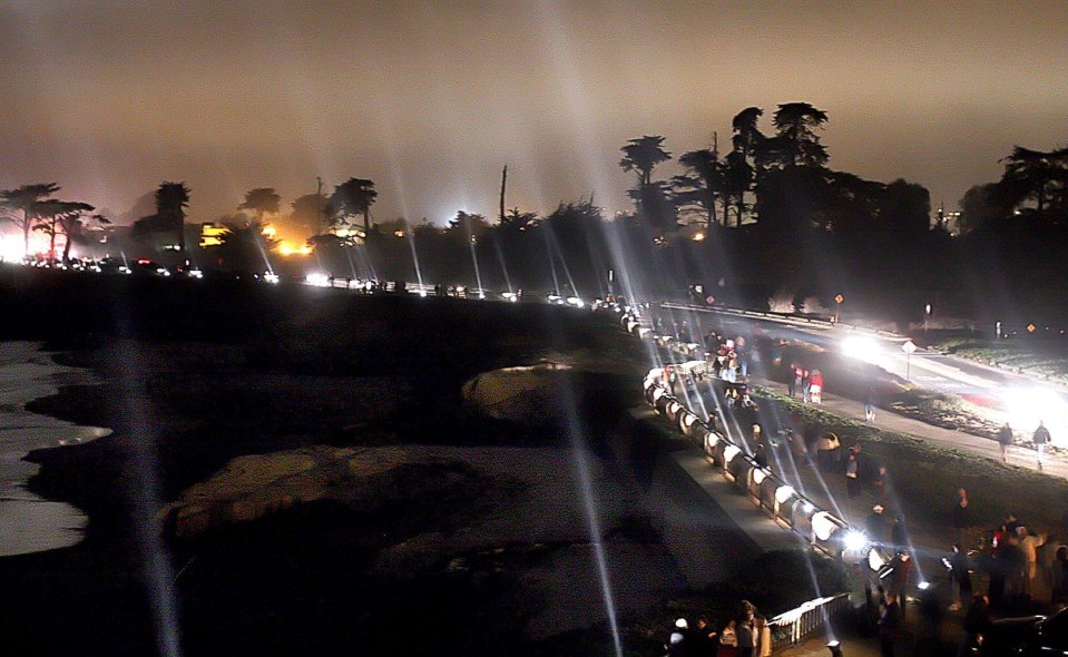 500 15-million candle-power spotlights send beams skyward along 3 miles of coastline along West Cliff Drive in Santa Cruz, Calfiornia on Thursday September 22, 2006. The project, presented by the Santa Cruz Institute of Contemporary Arts and staff entirely with volunteers, was created as a celebration of peace.