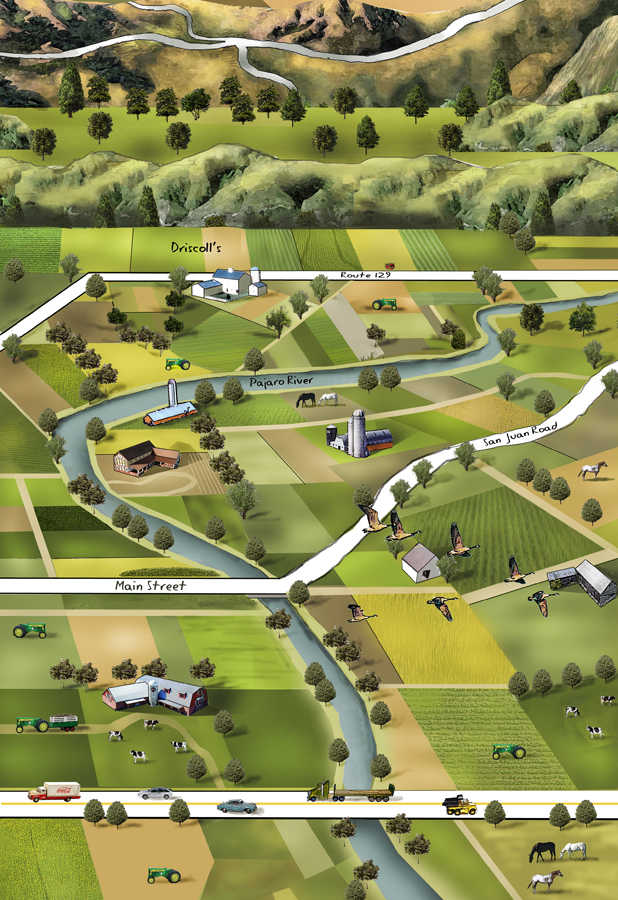 I am excited to include Watsonville in a portfolio of cities and regions I have illustrated over the last 20 years. As an artist, I have created edition posters celebrating cities and regions around the country. Some of those include Boston, Silicon Valley, Route 128, Wall Street, Palo Alto and Santa Cruz to name a few.