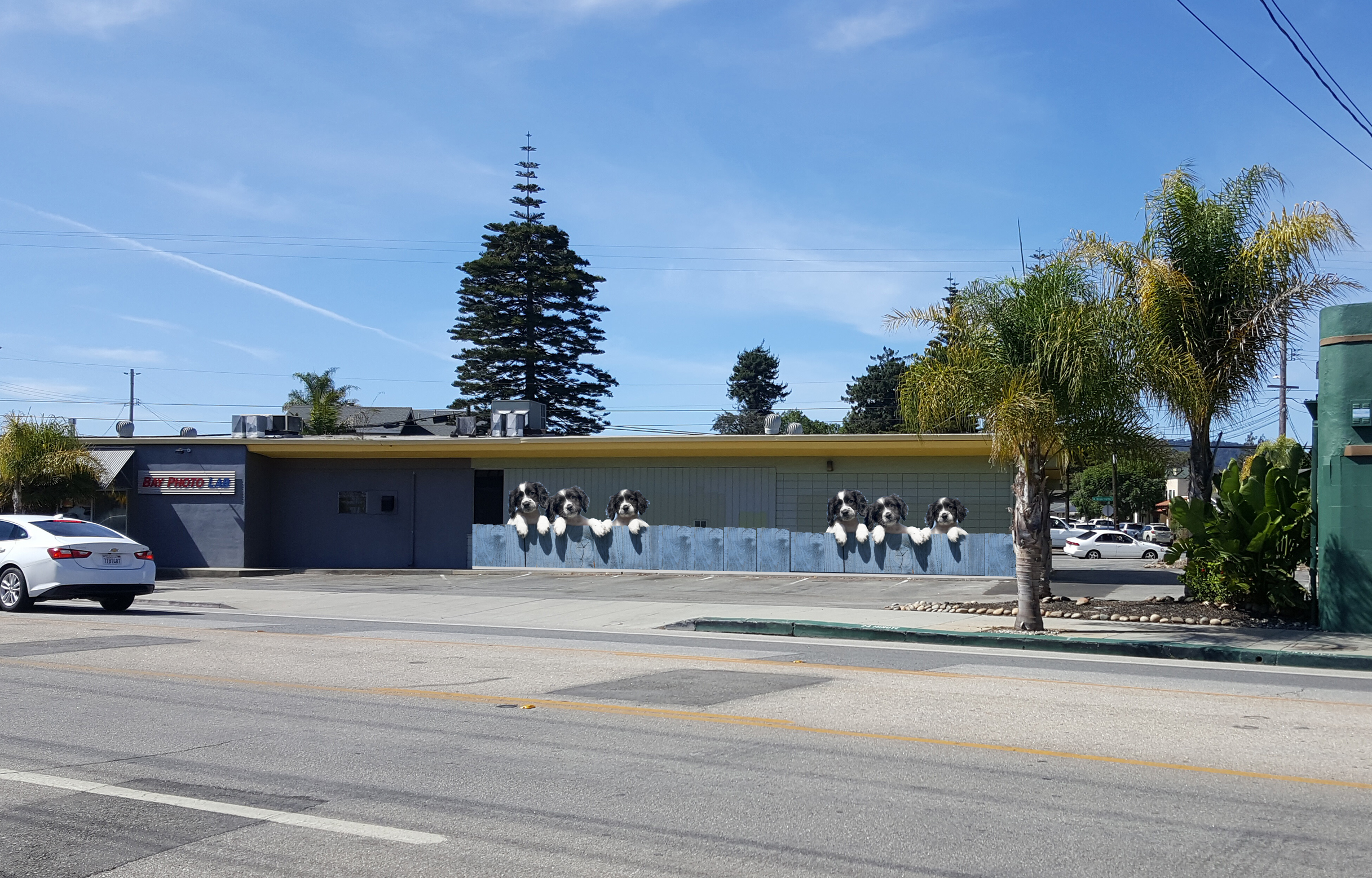 Bay Photo Soquel View with “Puppies leaning over fence” mural